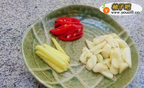 3备好蒜末,姜丝和辣椒丝。