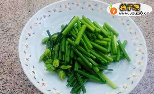 2韭菜花洗净切成长段。