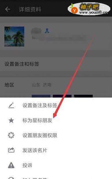 4在弹出的更多设置菜单中,点击“标为星标朋友”菜单项。