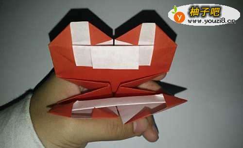 8将心形打开,将剪开口的部分包住另一部分,爱心口袋完成。