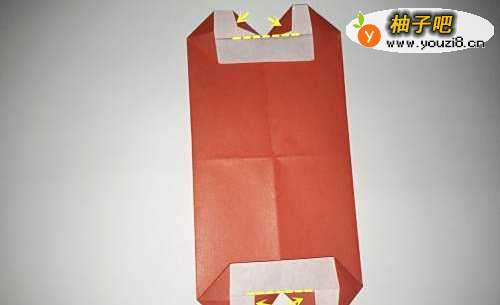 2将上下边分别沿着中线折过去,然后翻到背面。