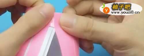 5第五步,让把两边卷起来,粘在一起,如图所示。