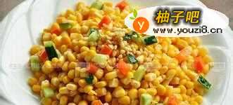 7放入煮好的玉米,胡萝卜丁和黄瓜丁。