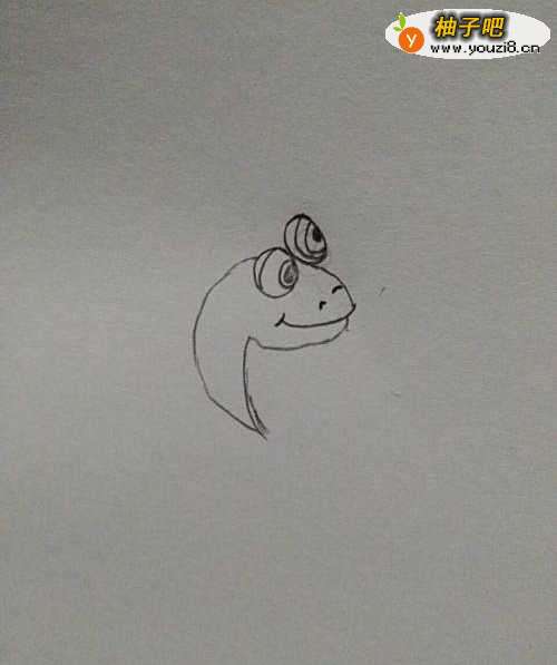 2然后我们再画一个稍微有点三角形的椭圆形做眼镜蛇的头部