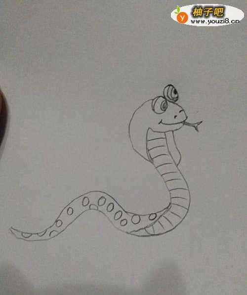 6我们再往后面给眼镜蛇加上一条长长的尾巴