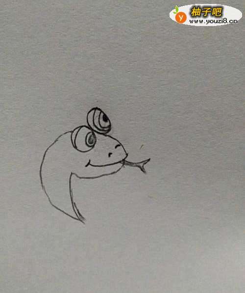 3我们给眼镜蛇的嘴巴里画出来一条长长尖尖的蛇信子,再给眼镜蛇画上鼻子