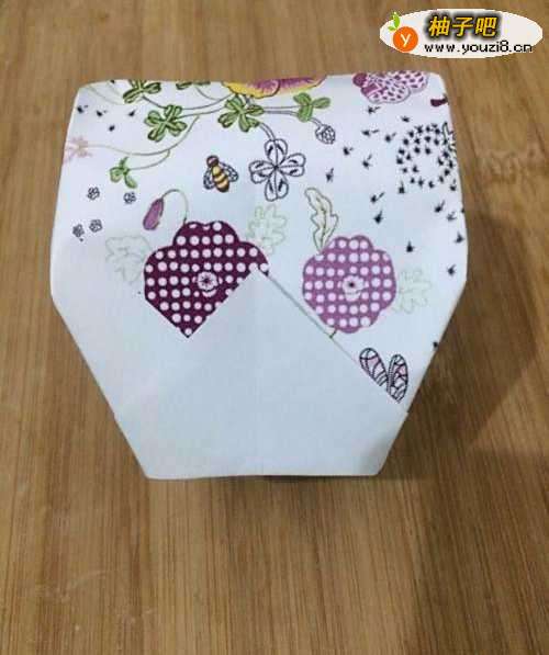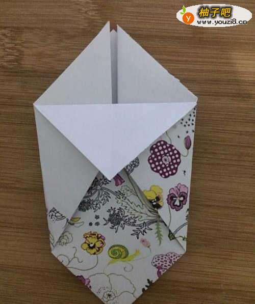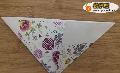 5把正方形的四个角向中线上宽下窄载倾斜折叠。