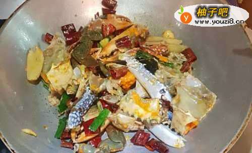 热油后加入姜,蒜头,葱,干辣椒,爆香约1分钟
