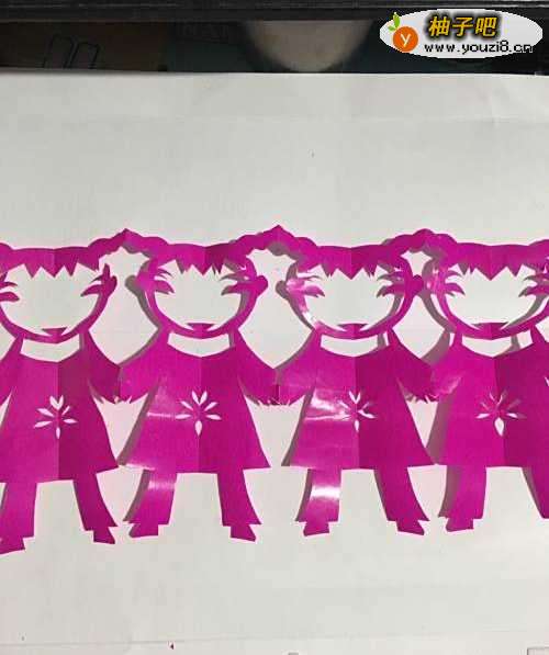 怎样用彩纸裁剪一副四个小女孩手拉手的图案