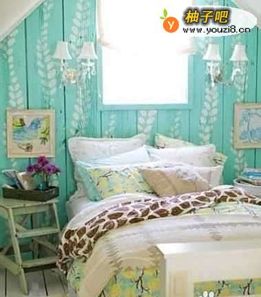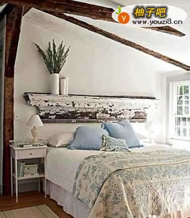 5阁楼的卧室。看到尖字塔似的屋檐就猜着应该是阁楼。的确设计的不错。不过个人不大建议阁楼装成卧室,觉得观赏性远大于实用性。