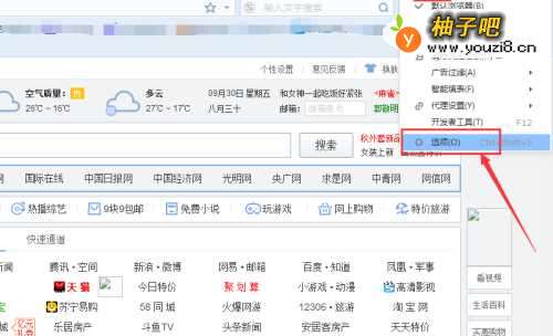 2打开搜狗浏览器之后,依次点击右上角的“工具”>“选项”。