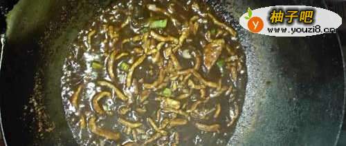 6加肉丝,翻炒,收汁,将肉丝浇到蔬菜上!吃时搅拌!即可!