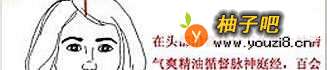 在头部沿着督脉分五条线上神游气爽精油循督脉神庭经,百会只后顶一公分一公分的按摩(或刮或刷)。