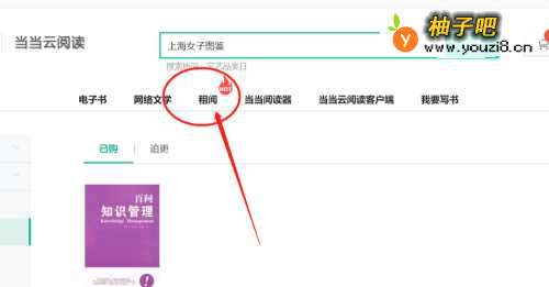 2在跳出的对话框中间部位,有一个选项卡是“租书”,我们点击进入。