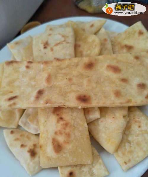 取出面团,把面团压成薄饼状,然后用造型或者直接切成小块