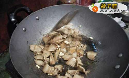 3将五花肉煸炒至两侧焦黄,这样肉吃起来不腻又入味。