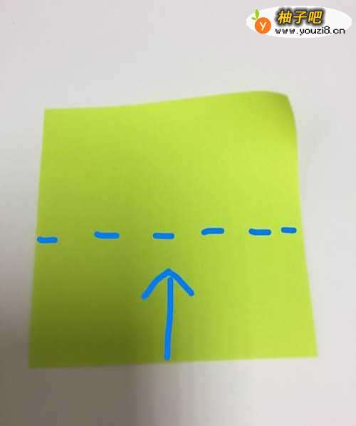 将便利贴向下折叠。形成折痕之后,打开,然后反方向再折叠一次,形成一个长方形。