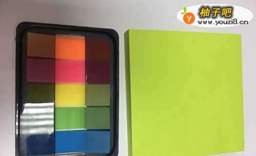 准备好便利贴,可大可小,什么颜色都可以。没有便利贴的话,普通的纸也可以。如果有花纹纸的话会更好看哦。注意纸张要是正方形的。
