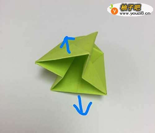 然后把纸张从中间撑开,形成一个内收的折叠正方形。