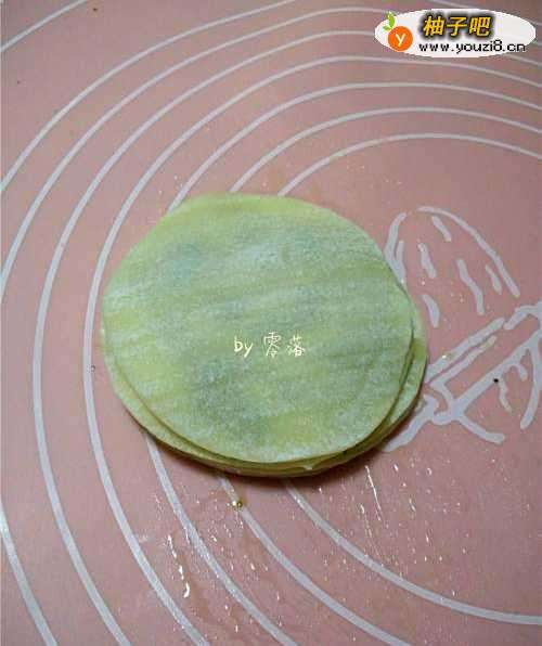 11用擀面杖将饺子皮擀薄,尽量薄;