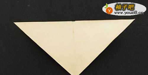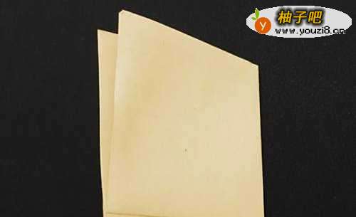 准备一张正方形彩纸,对折并打开,转90度,再次对折。