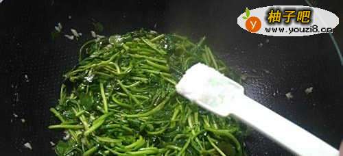起锅。色香味俱全的请炒西洋菜就做好了,怎么样?自己试试吧