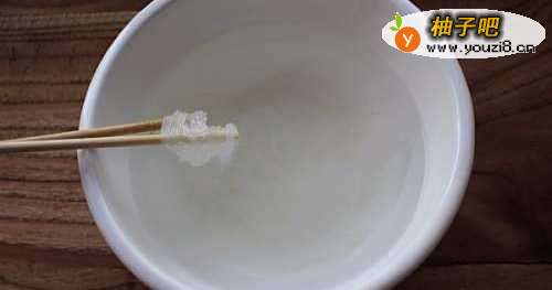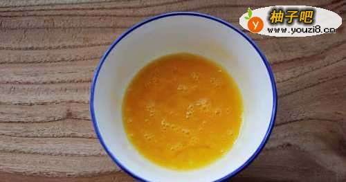 4把鸡蛋打进碗里,倒入1勺清水混合后搅拌均匀