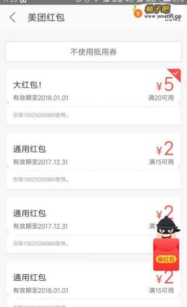 4领取完以后,我们回到之前的订单页面找到“抵用券”选项。在这里我们可以看到我们刚才拿到的,点击使用即可。当然要满足一定的额度,它才会满减。