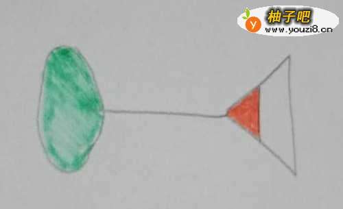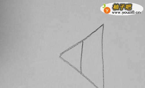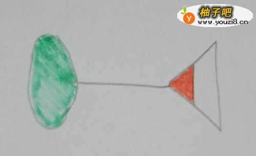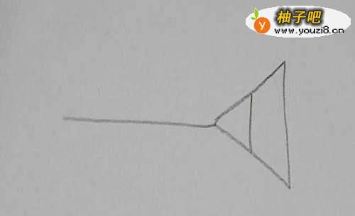 3接着从三角形的顶点往下划一条直线作为葡萄酒杯的杯柱。