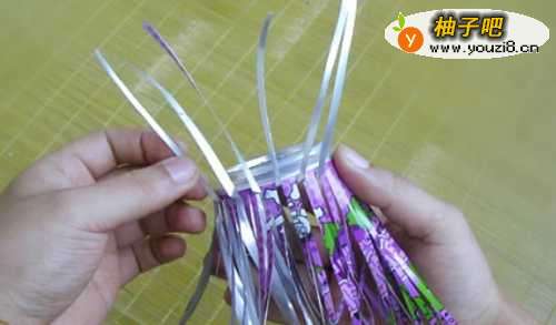 4每隔两条抽出一条细条,共抽出6小条,开始制作椅背,卷成自己喜欢的样子。