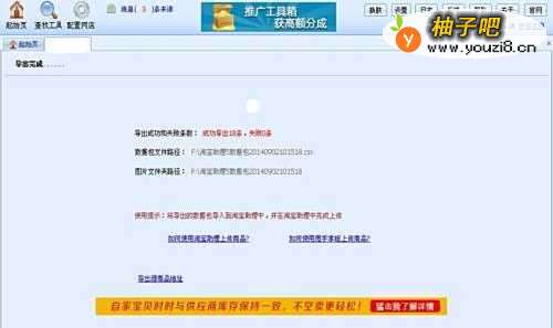 请选择导出数据包位置、导出文件类型及商品描述图片处理方式,再点击“导出”按钮