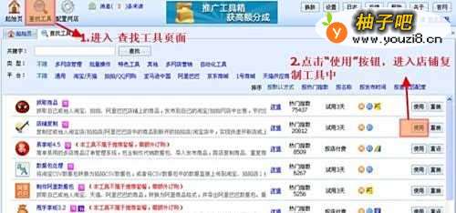 2在甩手工具箱查找工具页面找到店铺复制工具,点击后面的立即使用,会进入店铺复制工具中,如图所示:
