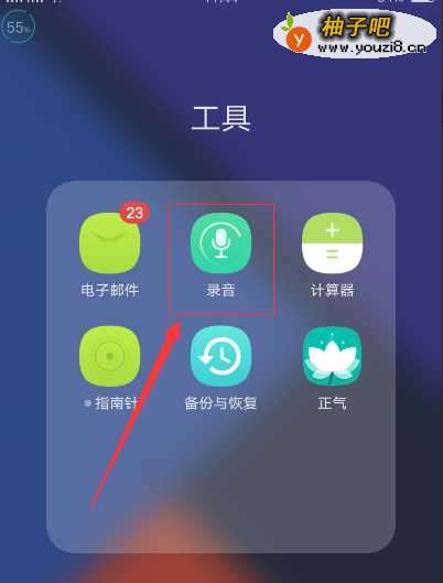 7录音录好后点击下手机上的工具找到录音的功能,如图所示!