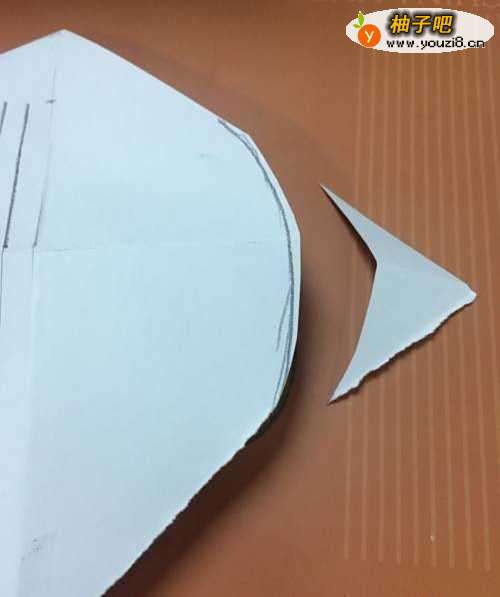 11剪出鱼鳍,鱼尾、鱼眼睛。再剪出一个大下巴。