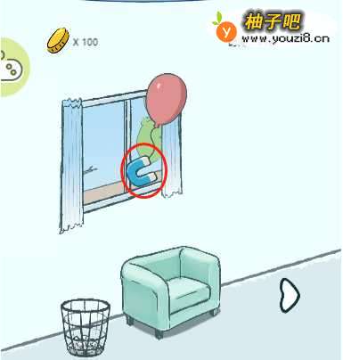 3接着等气球飘到室内的时候点击拿到绑在气球下面的磁铁