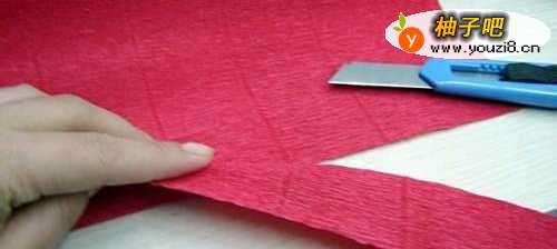 4用剪刀把皱纹纸划开,形成自然的弧度