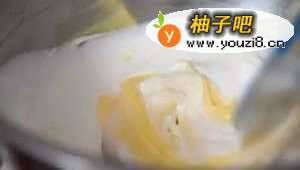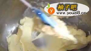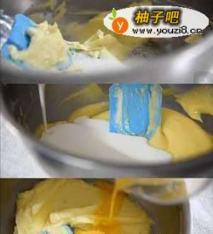 2把一颗鸡蛋打散,分少量多次倒入(3-4次左右),然后用刮刀搅拌均匀直至全部蛋液都用完;