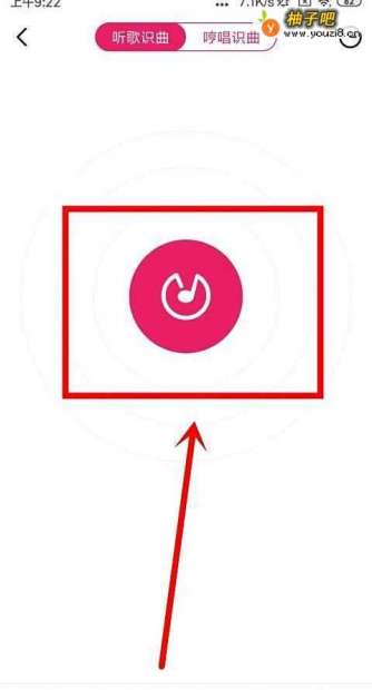 8进入到听歌识曲这个页面中之后,在该页面的中央位置我们找到圆形按钮,点击该按钮就能够打开听歌识曲功能了。
