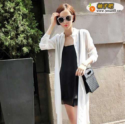 11长款白衬衫,其实还可以当做外套来穿,在夏天的空调房里,搭配一件长款白衬衫,不仅能保暖,而且很有飘逸的感觉。注意内搭的衣服颜色上避免亮色,以暗色为主,不然真有“白里透红”的效果了,又给人廉价和地摊的感觉。