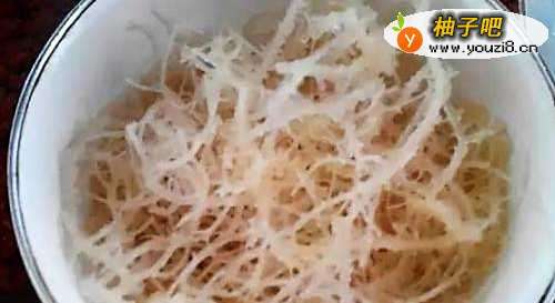 石花菜用凉水浸泡15分钟,至石花菜泡开,洗净沥干水分