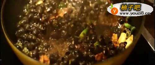 3将螺蛳炒熟后连同配料移入煮锅中,然后加入水盖上锅盖煮一个小时左右,如下图所示