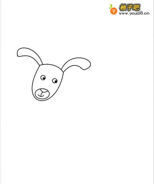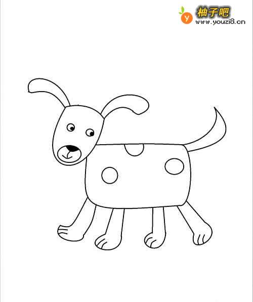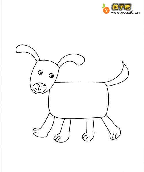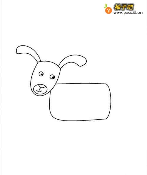 4然后在脑袋的中间部分,画出狗狗长方形的身体轮廓。