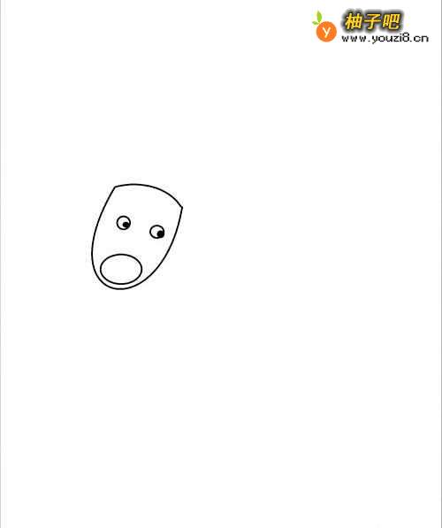 2接下来画出两只黑黑的眼睛,还有一个嘴巴和鼻子也画出来。