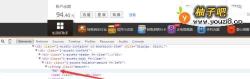 2在相应颜色的箭头指示里点击 在列表里双击审查元素选项,就会在下面弹出一个网页代码出来,我们就在这个下面弹出来的代码里面修改这个余额,是不是很神奇