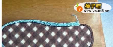 5最关键的一步,一般女鞋起头14针,男鞋16针。第一针里面钩两针长针,第二针不钩,这样钩一阵隔内一针,钩到左边的时候最后容一针用留在左边的线穿在住,再把线拉到右边钩。