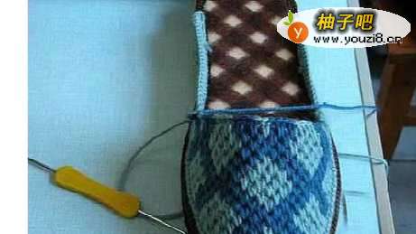 4鞋头度朝着自己,在最中间的位置把线穿入。左边留出一段毛线备用(线上要比鞋上多出一部分)。然后把要钩鞋面的那根线让在右边,从右往左钩!