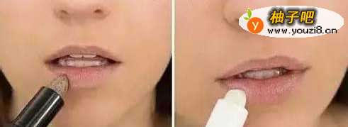 接着用保湿但又不油腻的唇膏涂抹在唇部。哑光不亮的质地可以更完美上妆。