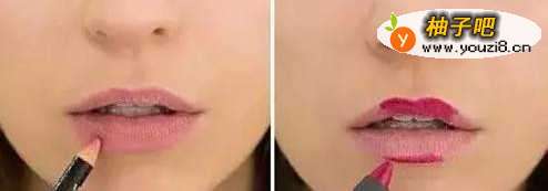 用唇线笔再次勾勒一遍嘴唇,填补较干燥的部位。