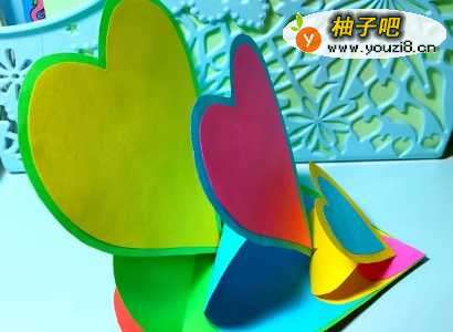 10所有的爱心都已粘好了,立起来看一下效果,还不错吧!一个很漂亮的立体爱心贺卡就好了,你喜欢吗?