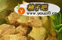 3排骨冷水下锅,放姜片、葱结、料酒煮出血水捞出控干